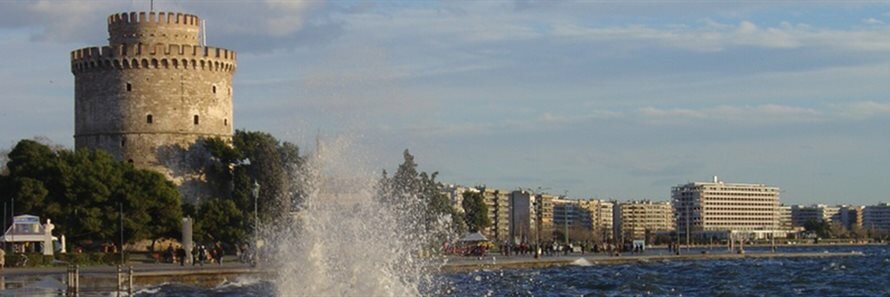 Η πόλη της Θεσσαλονίκης μοιάζει σα να ‘ναι χτισμένη αμφιθεατρικά γύρω από το Λευκό Πύργο – το σήμα κατατεθέν της, καθώς μπροστά ο πλατύς θαλάσσιος ορίζοντάς της «κλείνεται» από τον επιβλητικό όγκο του Ολύμπου.